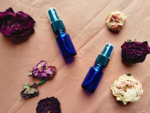 園内のバラを蒸留した蒸留水と精油をブレンドしてオリジナルのアロマミストをつくります。