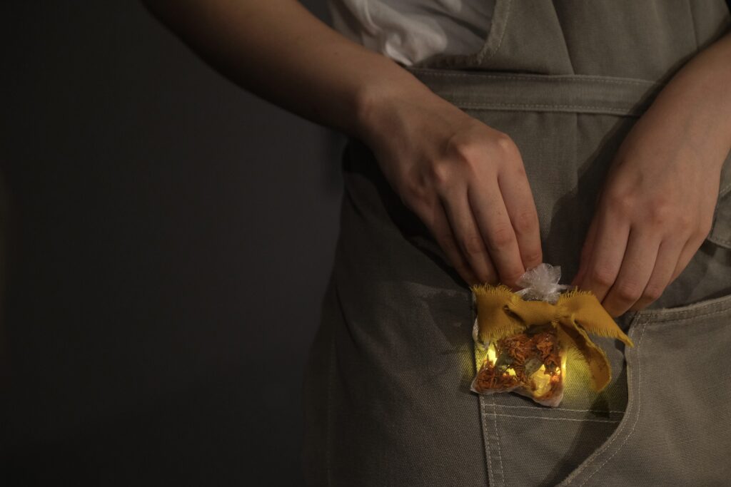 ライト、ドライフラワー、きらきらビーズ、羽などの材料を園内をめぐりながら集めて、袋に入れてつくります!園内で持ち歩いてイルミネーションに参加しよう!
