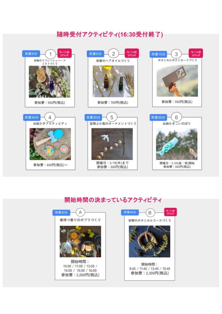 2026/02/28【3/4(水)~3/30(月)】インフォメーションのアクティビティ一覧