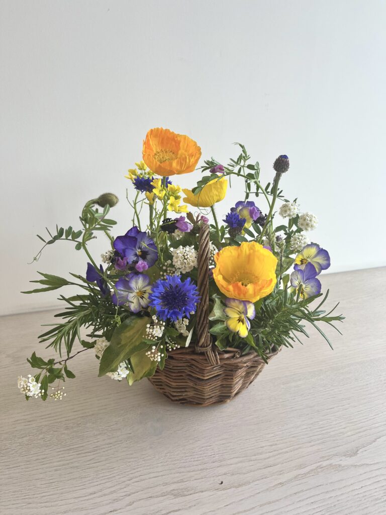 〇参加費:3,000円(税込) 参加人数に関わらずかごを1つお渡しして、草花を摘んでお持ち帰りいただけます。(ハサミの貸出は1つになります)必要なかごの数をお申し込みください。お花を摘まない方もお付き添いいただけます。