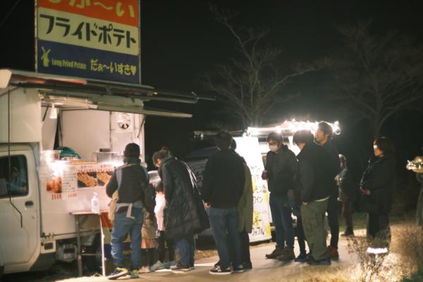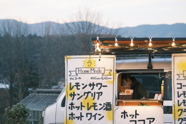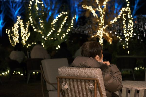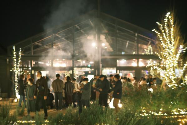 イルミネーションや焚き火が幻想的なレストランエリアやアトリエ内には、多彩なクラフト作家やグルメのマルシェが出店し、シャンパンゴールドに彩られてキラキラとしたクリスマスムード満天の園内