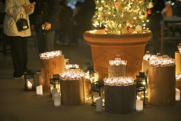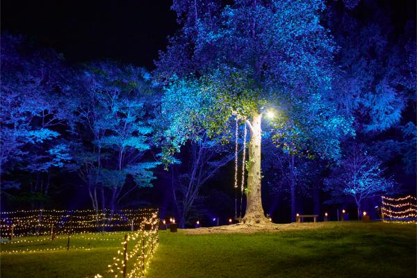 澄んだ冬の空気の中、星が煌めく里山の自然と幻想的な灯りのイルミネーション、そしてクリスマスムードの園内を一緒にお楽しみください。
