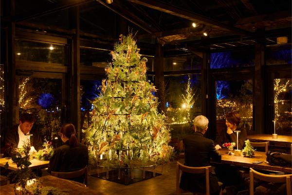 ボタニカルツリーの装飾が華やかなレストランのグルメ