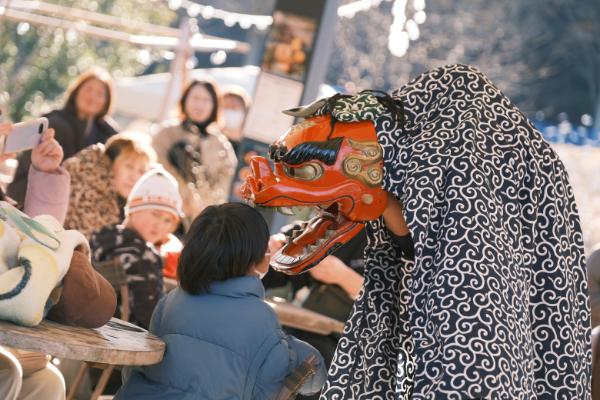 続いて登場したのは、無病息災を祈る獅子舞。軽快な囃子に合わせて舞う獅子は会場の注目を集め、子どもたちの頭を優しくかんで健康と成長を願いました。