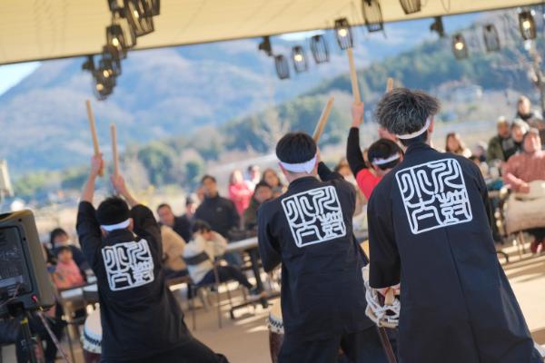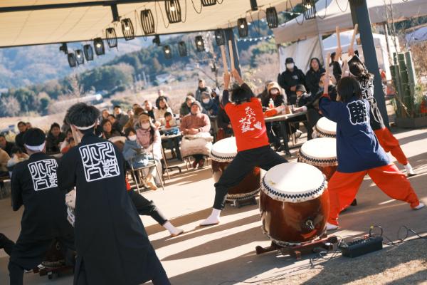 イベントは、里山の自然を背景に、地元で活躍する小川和太鼓の迫力ある演奏からスタート。大地に響き渡る太鼓の音は、まるで自然と一体になるかのようで、会場全体を一気にお祝いムードへと包み込みました。