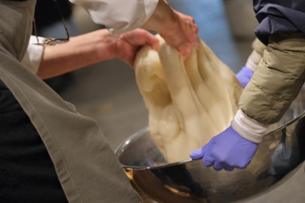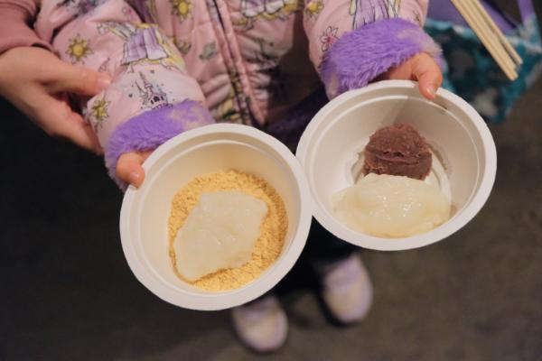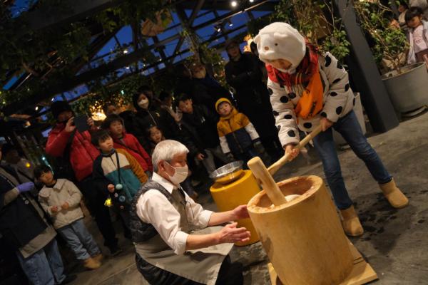 餅つき体験の後には、つきたてのお餅のふるまいが行われ、来場者の皆さまに新年の味覚を楽しんでいただきました。