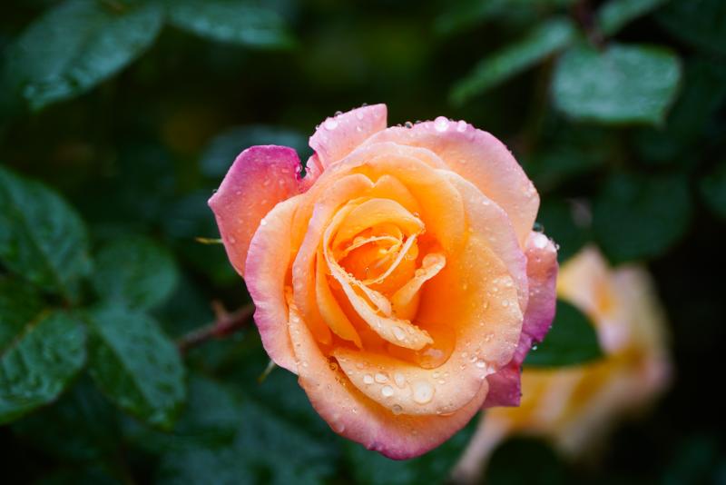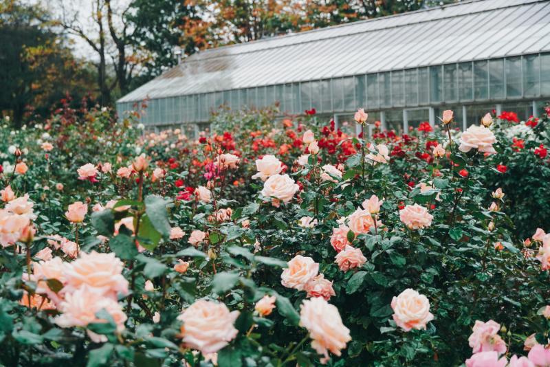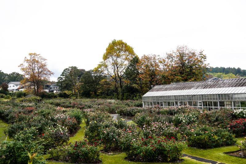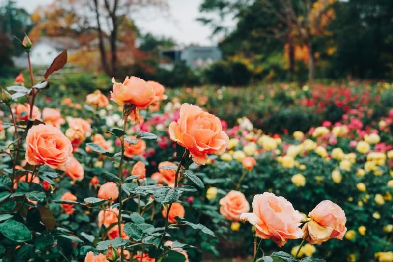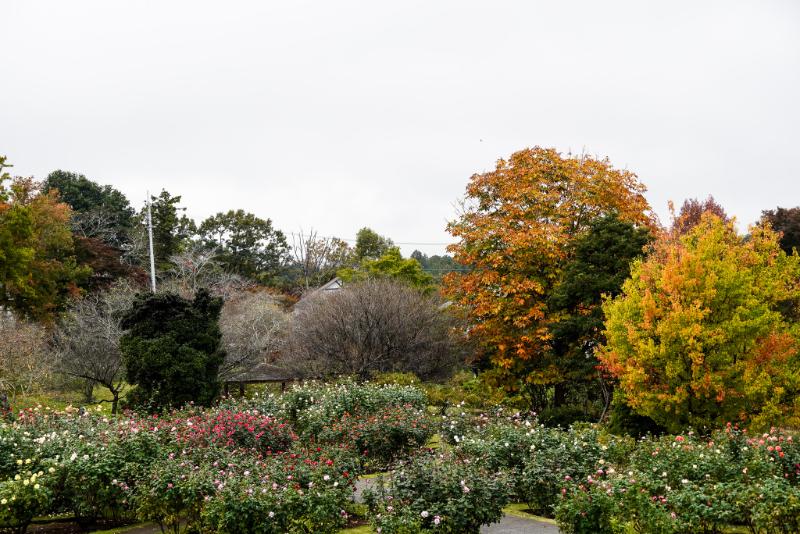 秋バラが見頃を迎えたバラの品種園