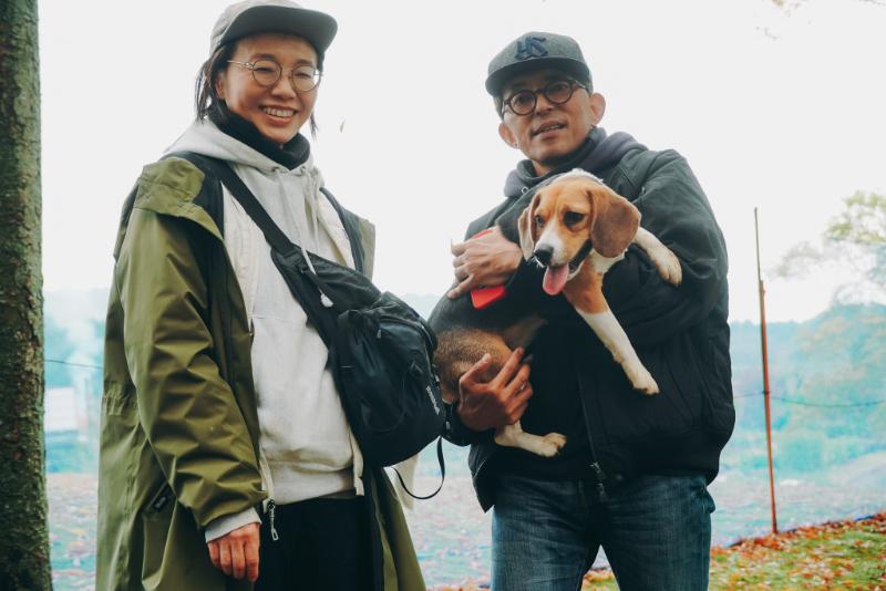 本日はワンちゃんと一緒に山頂の花やさと山のコットンテントにてグランピングをされるファミリー!