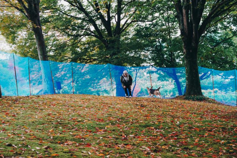 秋色に色づく紅葉が美しいグリーンヒルの木の下には、「大型犬用」「小・中型犬用」の2つの無料の特設ドッグランが設けられ、ワンちゃんが気持ちよさそうに走り回っていました。