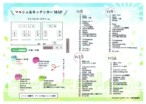 日曜日は小雨の降るお天気となりましたが、秋バラが見頃を迎えた「バラの品種園」にあるアトリエローズファームの中では、さまざまな出店者さんが出店し、ワンちゃんと一緒にクラフト作りやお買い物、マッサージなどを楽しんでいただけるイベントとなりました。