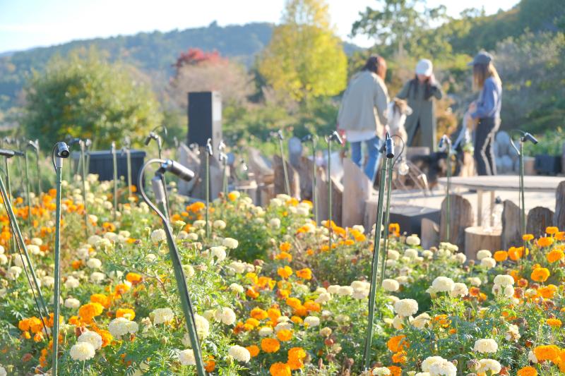 マリーゴールドが織りなす花の川をご覧いただけるのは、この週末まで。