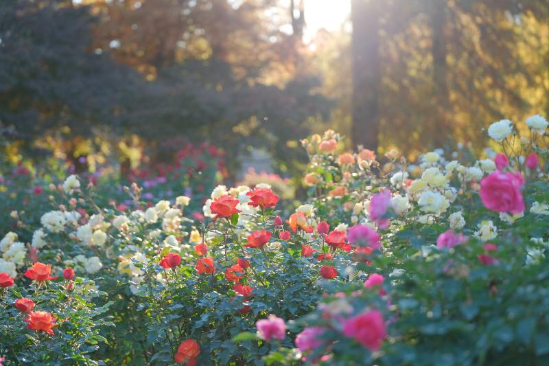 見頃の品種園の秋バラと紅葉とともに、秋から冬への移り変わりをお楽しみください。