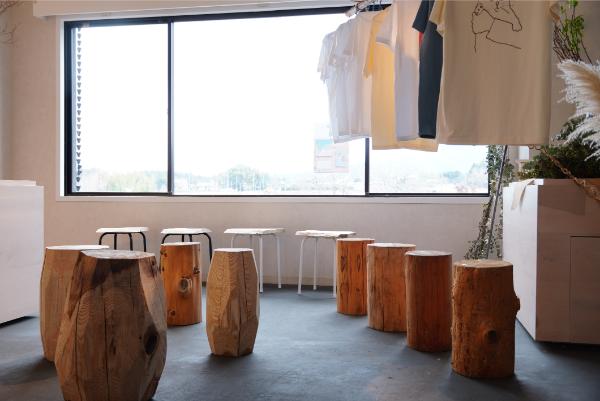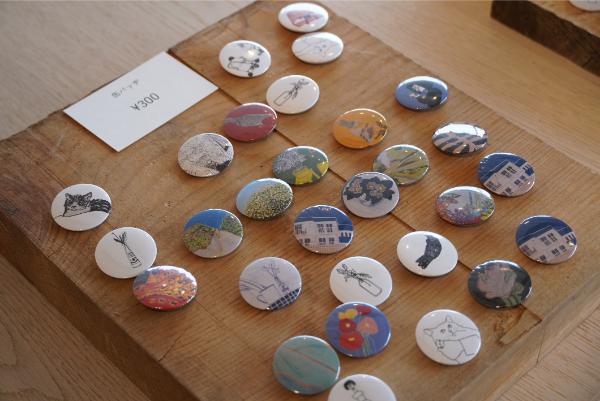 地元の製材所の木を使った木工品や、日常の中で出会った草花や木を描いた作品などを展示販売しています。