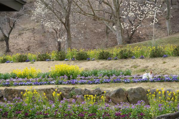 菜の花やミモザの黄色、パンジーの青色など、少しずつ彩りを増しています。
