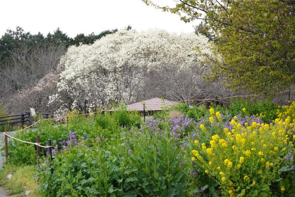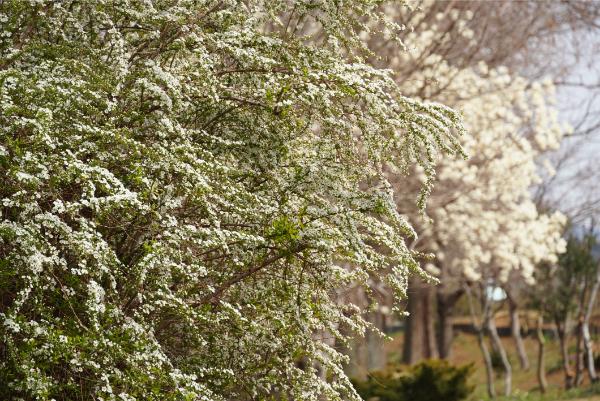 園内では、ハクモクレンやユキヤナギなど白いお花が咲き誇っています。