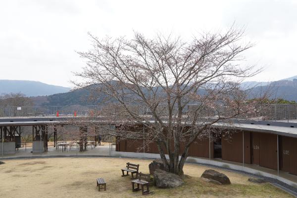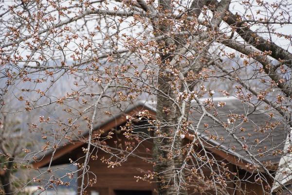 サークルロッジを囲むように植えられたソメイヨシノがチラホラ開花しています。