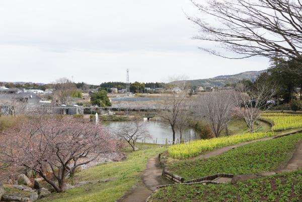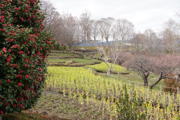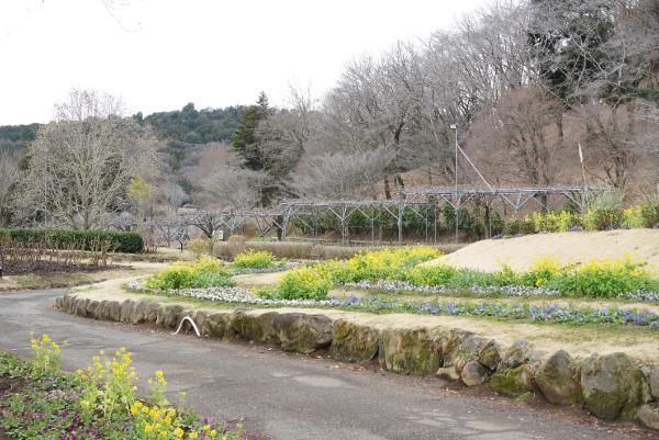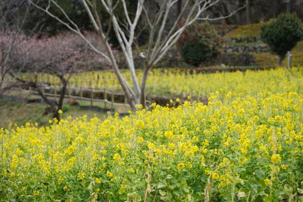 あちこちで菜の花が咲き、春を感じる園内。