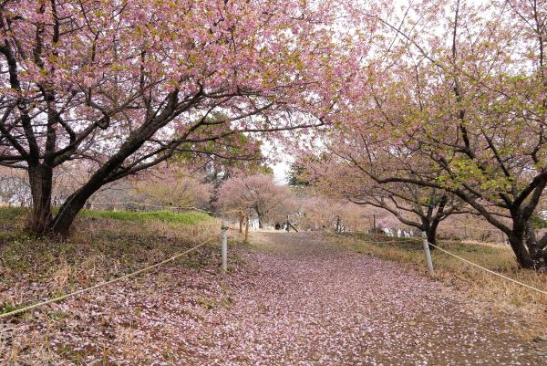 花やさと山の河津桜は葉っぱが一部でていますが、山全体がピンク色に染まり満開となっています。