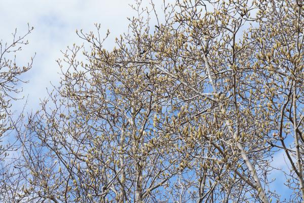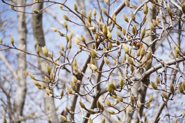 桜の近くでは、コブシやモクレンのふわふわの蕾が大きくなり、開花間近!
