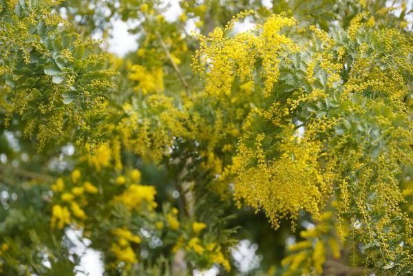エントランス前のミモザも黄色く咲き誇っています。