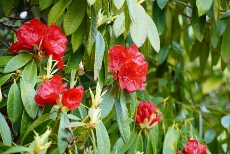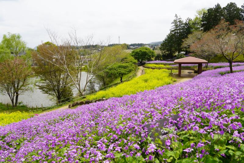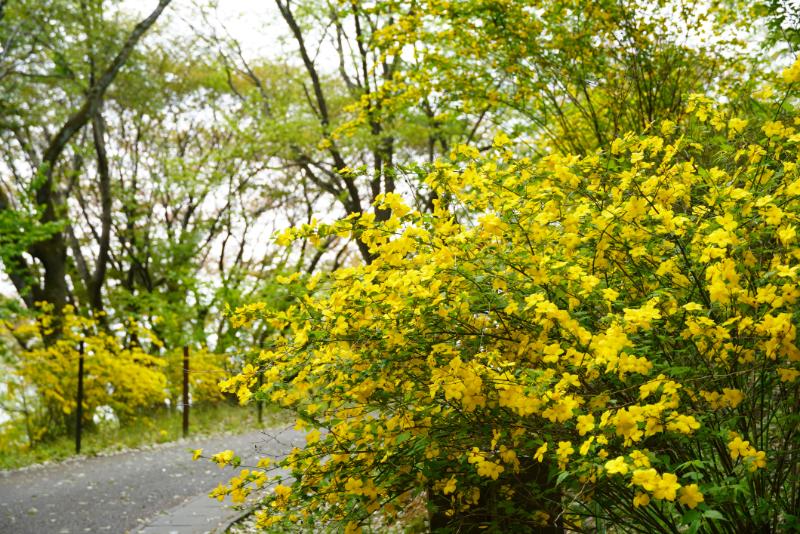 また、鮮やかな黄色が印象的なヤマブキ、可憐な紫色が広がるムラサキハナナ、そして華やかで存在感のある西洋シャクナゲも咲き、園内はまさに春爛漫の景色が広がっています。