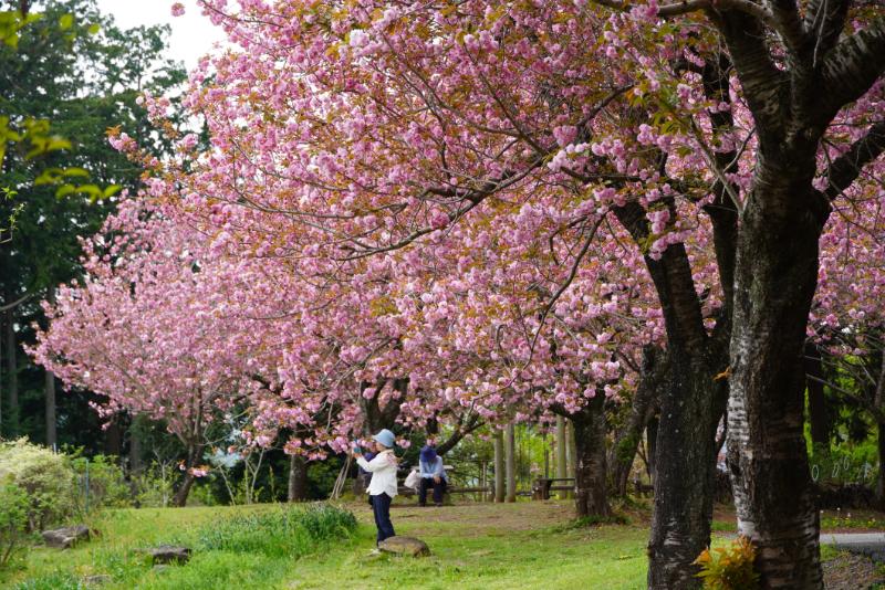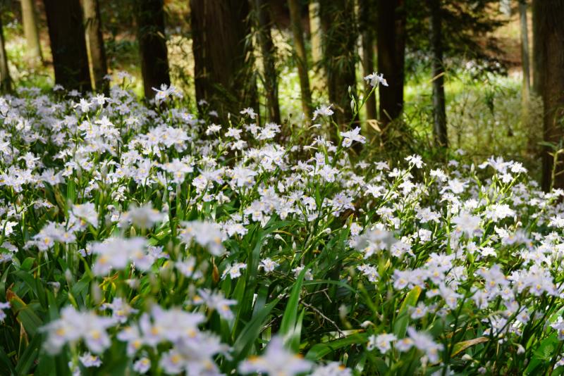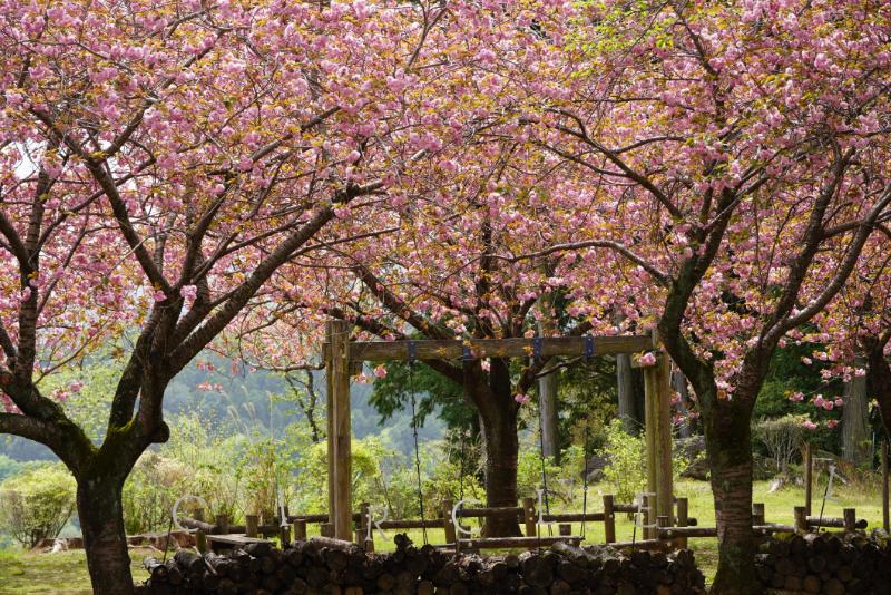 やわらかな花びらが幾重にも重なる八重桜と、清楚で凛とした佇まいのシャガが見頃となりました。