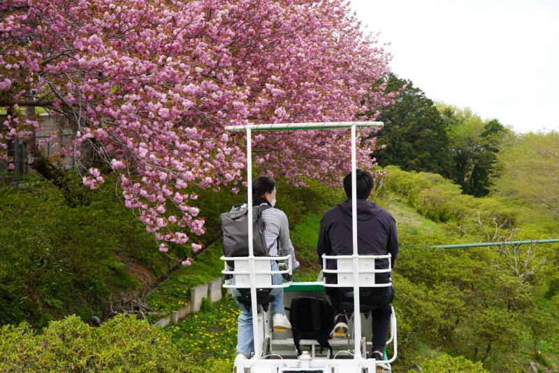 スカイサイクルに乗って、間近に八重桜を愛でることができるもの今だけのお楽しみ!