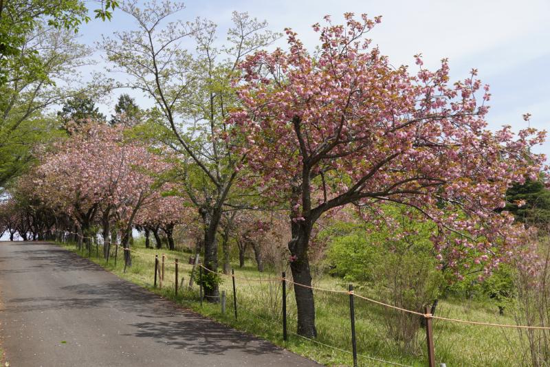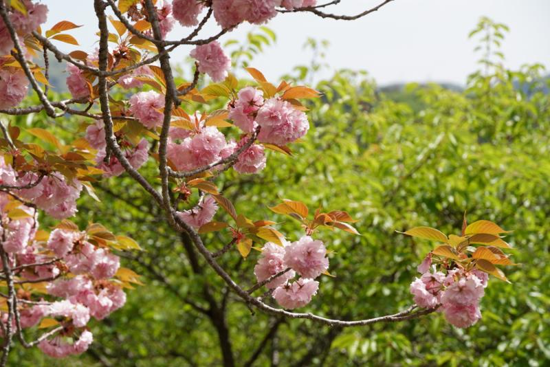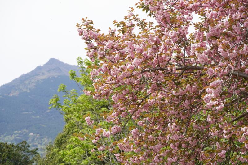 山頂では、華やかな八重桜が咲き誇り、背景には雄大な筑波山の景観が広がります。春ならではの美しいコントラストをお楽しみください。