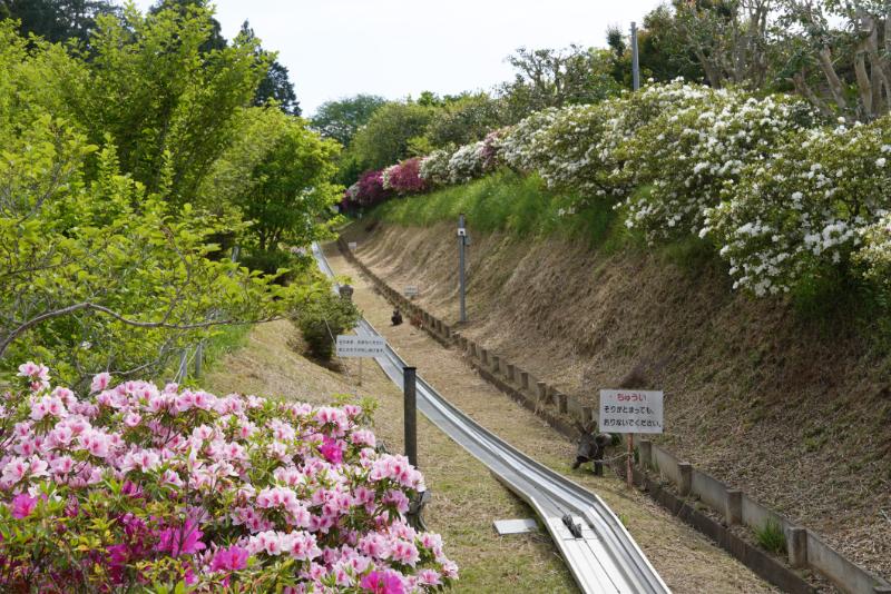 ツツジの中を滑るスポーツスライド