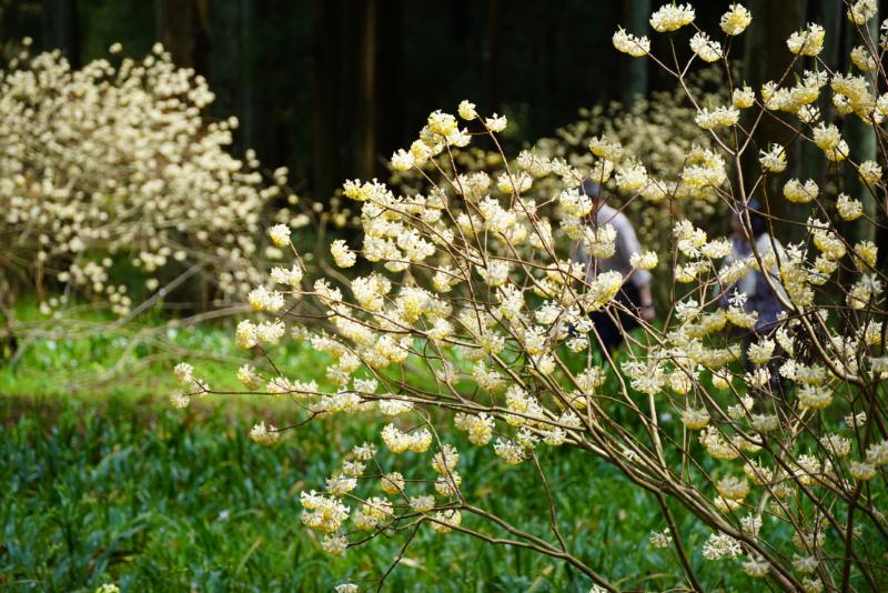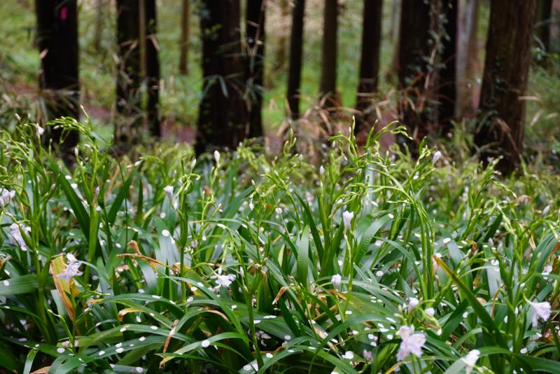 森の中にあるシャガの群生地ではミツマタの下で、白いアヤメ科のシャガが開花し始めました。