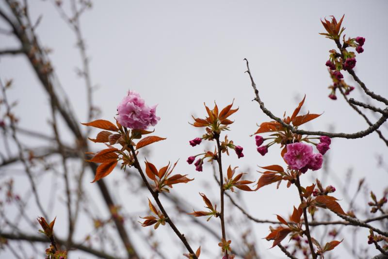 山頂では遅咲きの八重桜が数輪開花し始めました!