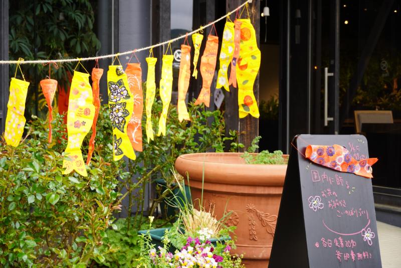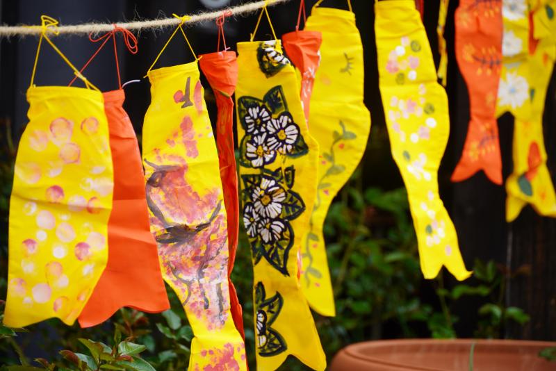 子どもたちがお絵描きしてくれた素敵なこいのぼりが風にたなびいています。