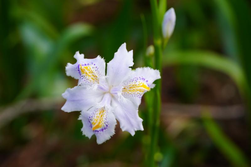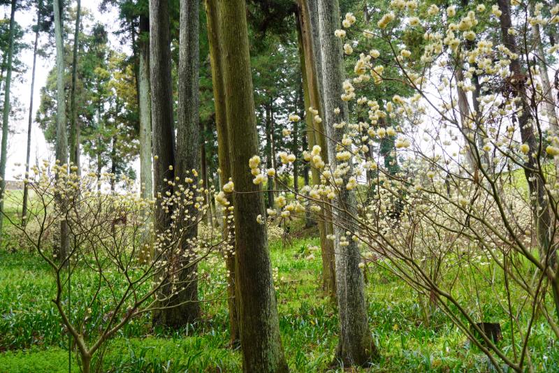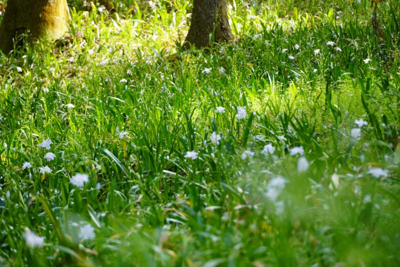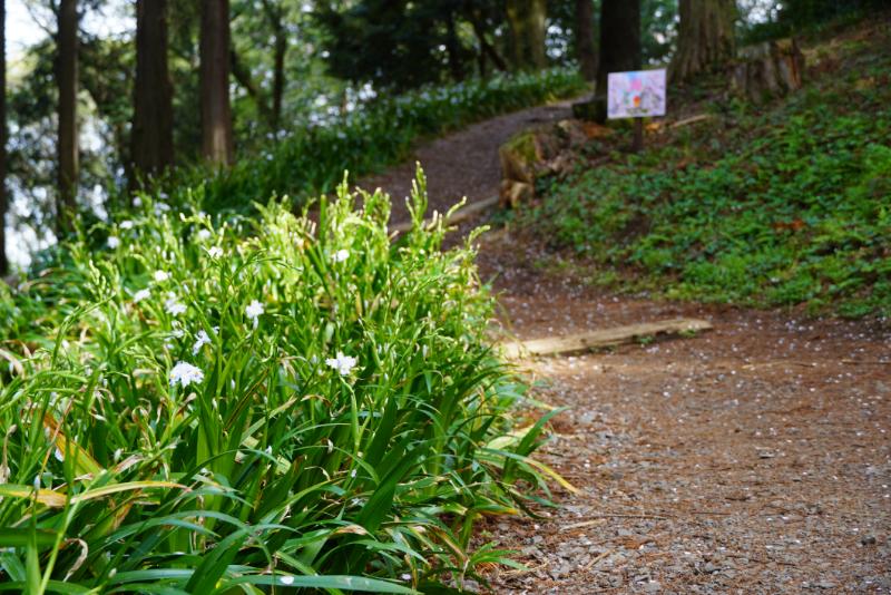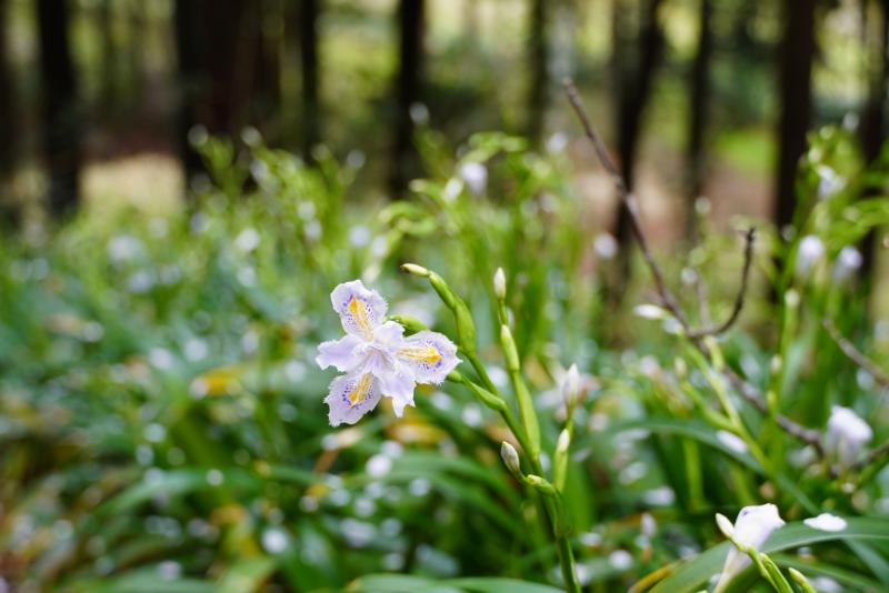 ミツマタの下に咲く、白いお花が可愛らしいシャガの森の散策をお楽しみください。