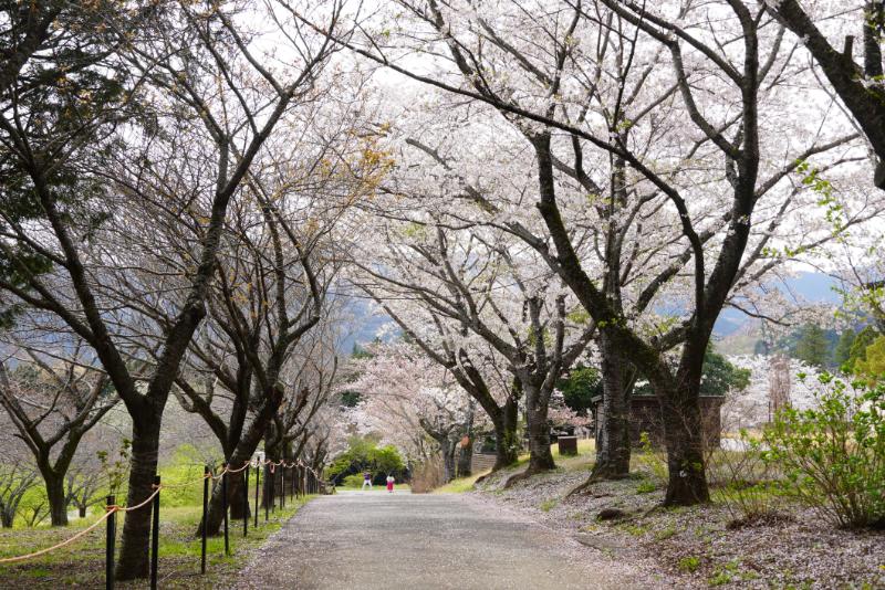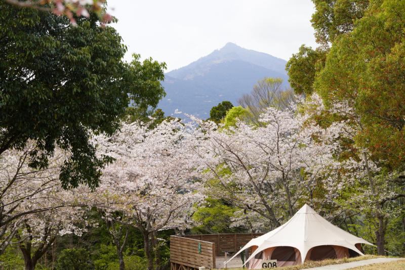 ソメイヨシノは散り始めとなりましたが、山頂のグランピングエリアをはじめローズファームカフェから見渡す池の周囲まで桜が優しく咲いています。