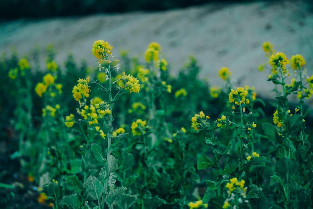 グリーンヒルと池の周りで咲きはじめた菜の花