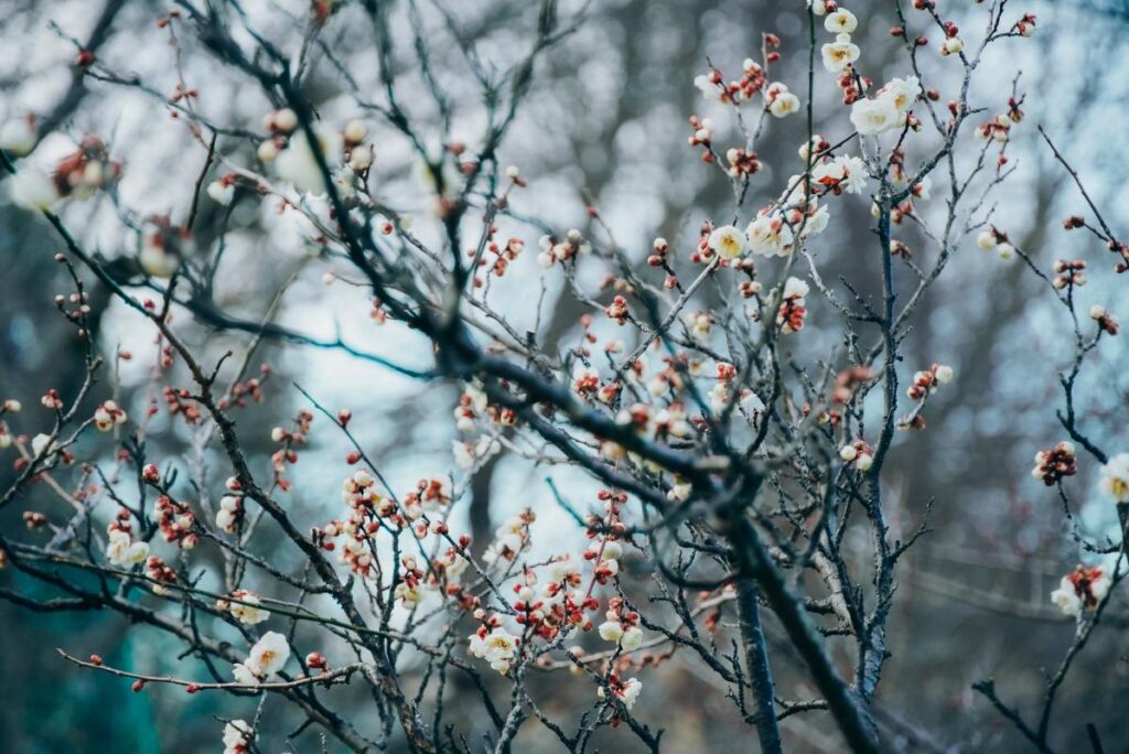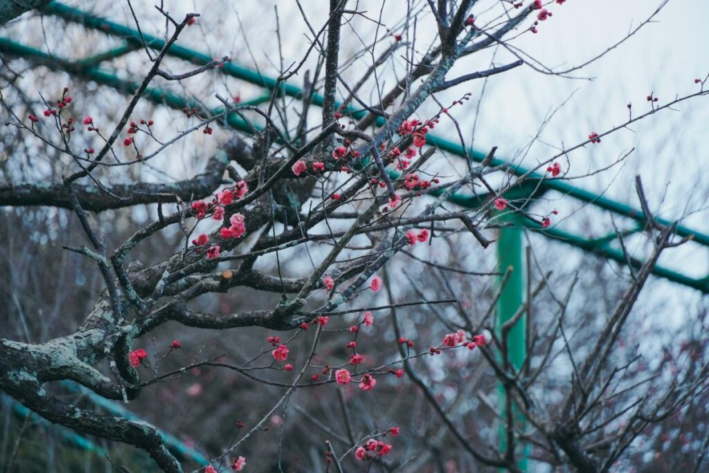 日中は冬晴れの快晴が続き、紅白の梅と河津桜が開花しました!