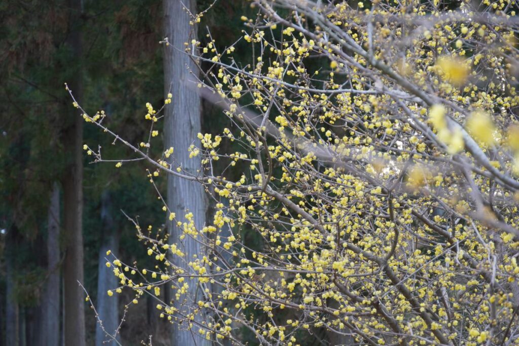 花やさと山の山頂とスポーツスライド下に咲くロウバイも、蠟細工のような黄色い可愛い花をたくさんつけて、香り豊かに咲いています。