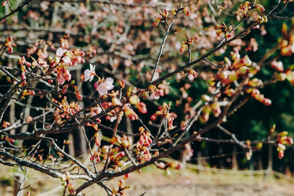 花やさと山の山頂にある河津桜の標準木が開花しました