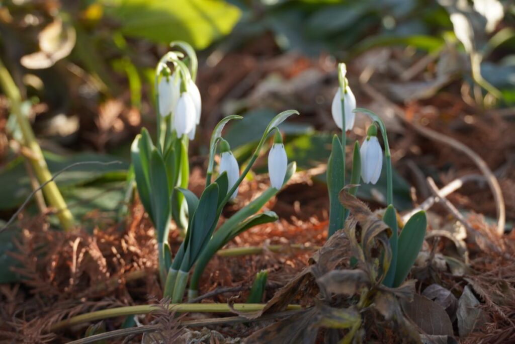 品種園の奥では、クリスマスローズとスノードロップ、スイセンが顔を出しています。