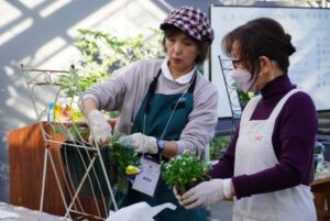 日本ハンギングバスケット協会茨城県支部のレクチャーで、ハンキングバスケットを仕上げたあとは、完成作品を眺めながら楽しむ、レストランランチ付きレッスン。 9,100円
