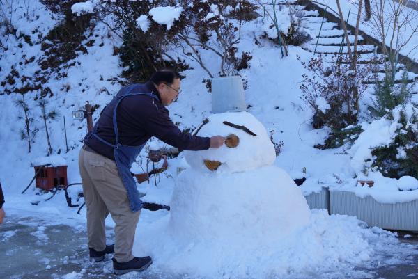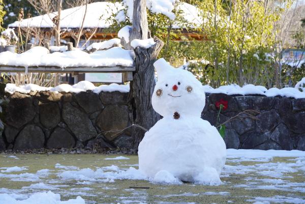 スタッフが心を込めて作った雪だるまも園内各所に登場。