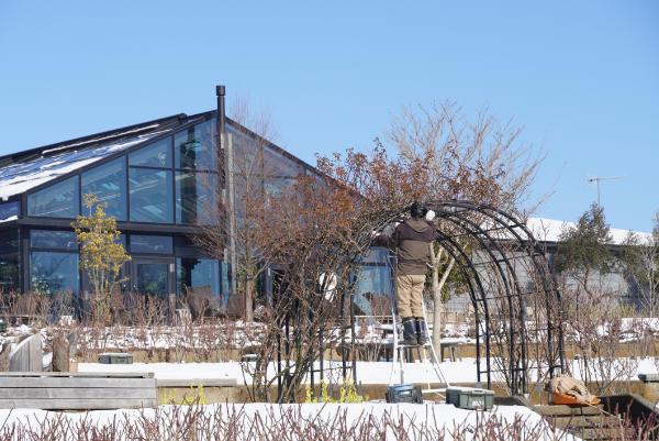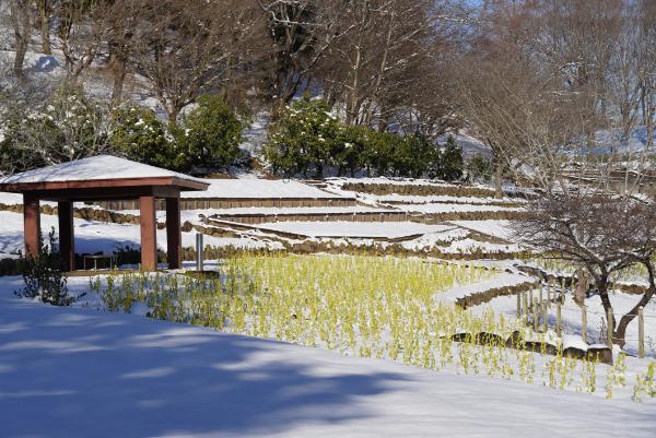 園内のあちらこちらに雪が積もりましたが、やわらかな陽ざしによりふんわりとした雪は次第に溶け、散策路は通常通りお楽しみいただける状態となっています。