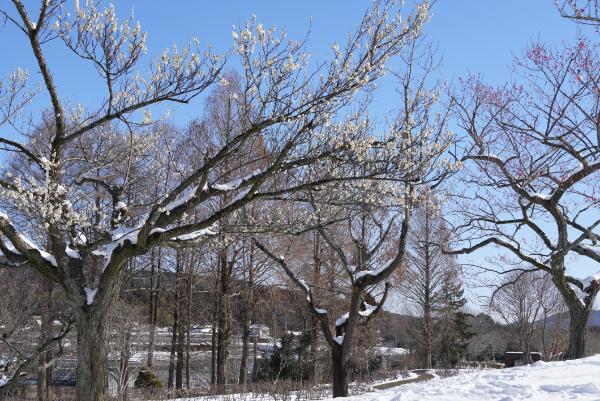 雪をまとったロウバイや河津桜、梅の花は、冬ならではの健気で愛らしい姿を見せてくれています。