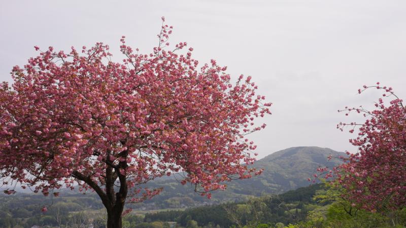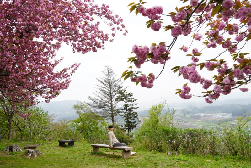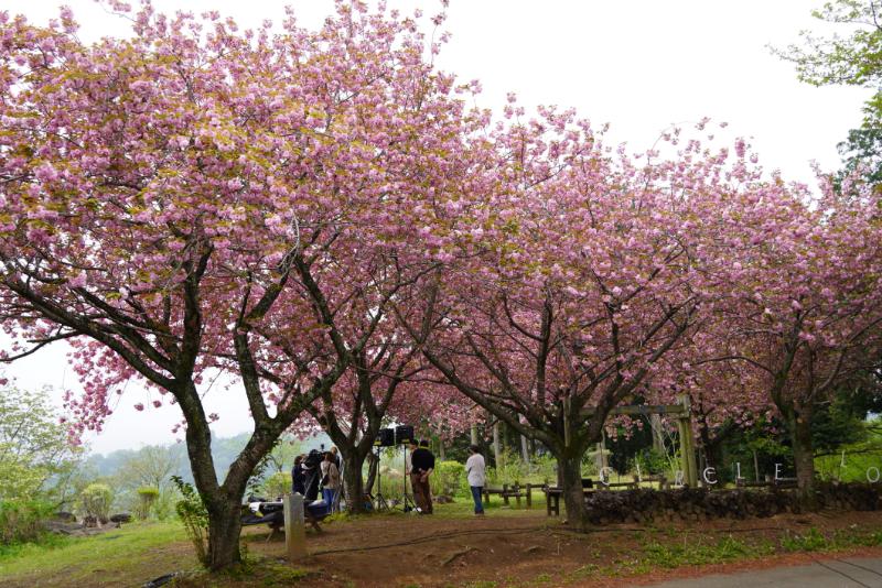 山頂エリアでは、八重桜が見頃を迎え、周遊道路沿い100mに渡り八重桜が咲き続いています。