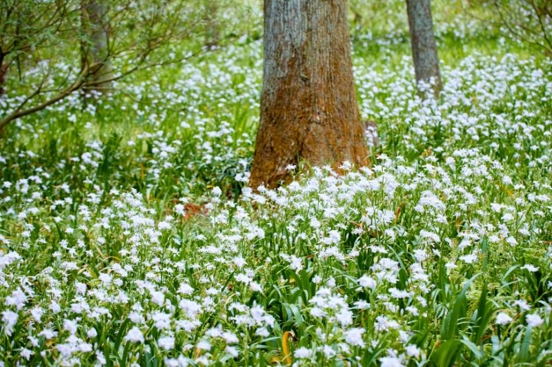 八重桜から森をくだった「シャガの小径」で群生するシャガからも生中継!