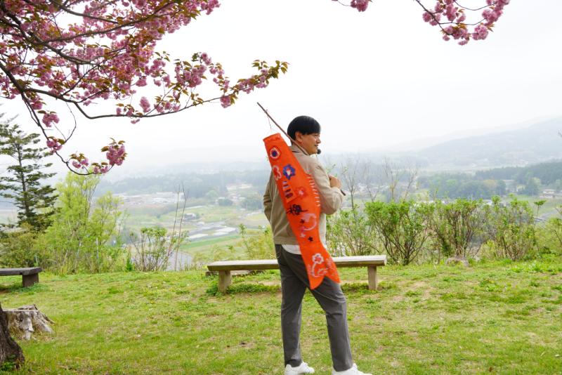 インフォーメーションでレンタルしているこいのぼりを持って依田さんも記念撮影!