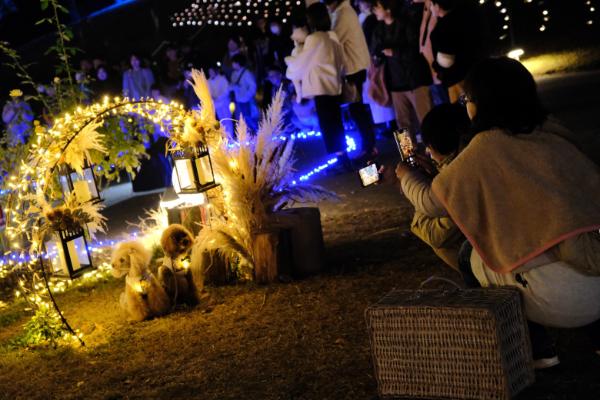 アトリエでマルシェやキッチンカーグルメを楽しんだり、フォトスポットで撮影したり、紅葉の下の林間ドッグランで思い切り走り回ったり、そして夕方からはイルミネーションの幻想的な灯りの中でワンちゃんとの楽しいひとときを過ごしたり。