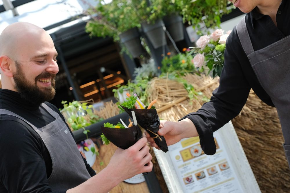 園内のレストランでも、新鮮な野菜をおいしく可愛く食べられるブーケサラダがセットのランチセットが人気です!