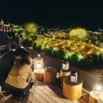 【夕食後】いばらきフラワーパークのライトアップ&イルミネーション「Moonlight Rose Garden」が、追加料金で楽しめます。ランタンを片手に、シャンパンゴールドの光に灯されたバラ園へ。