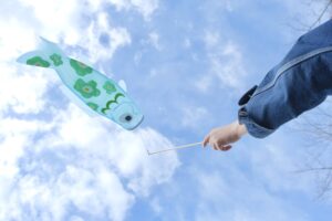 かわいいサイズのこいのぼりにお絵描きして春の心地よい風が吹く園内で持ち歩こう。